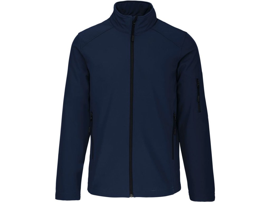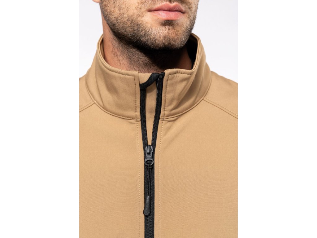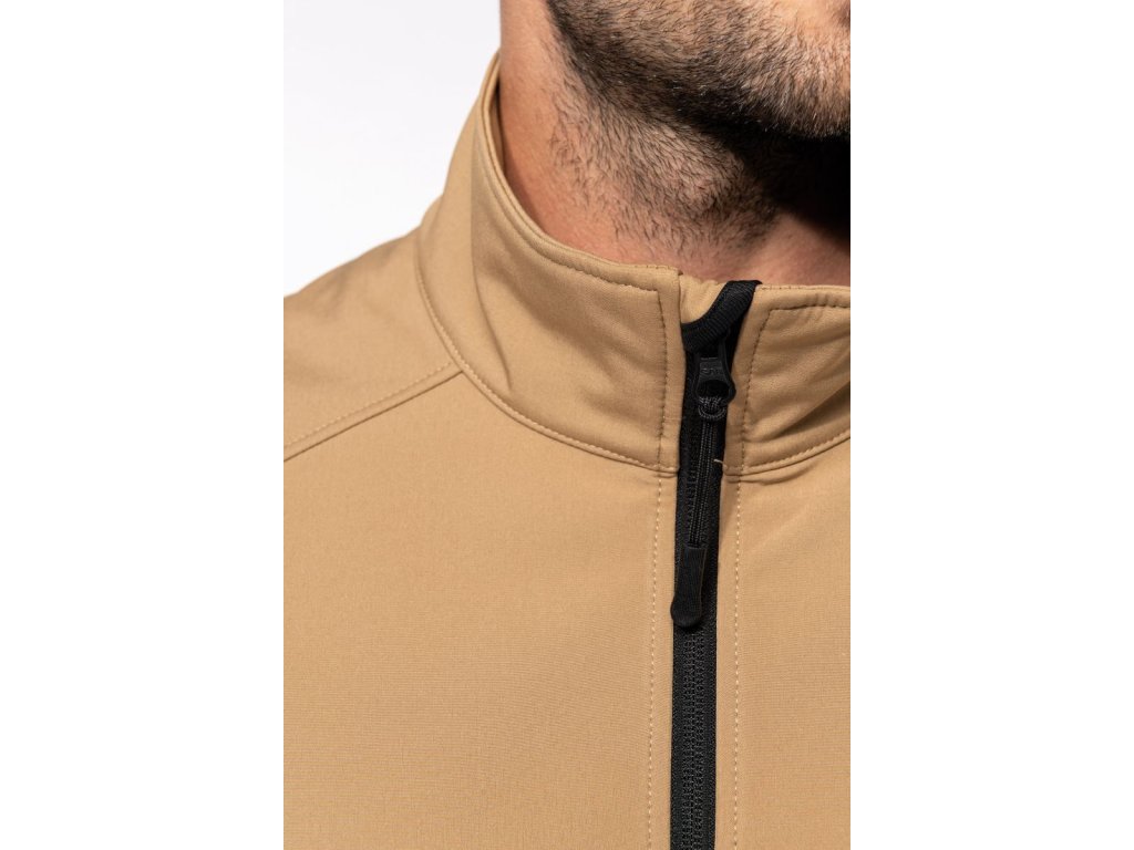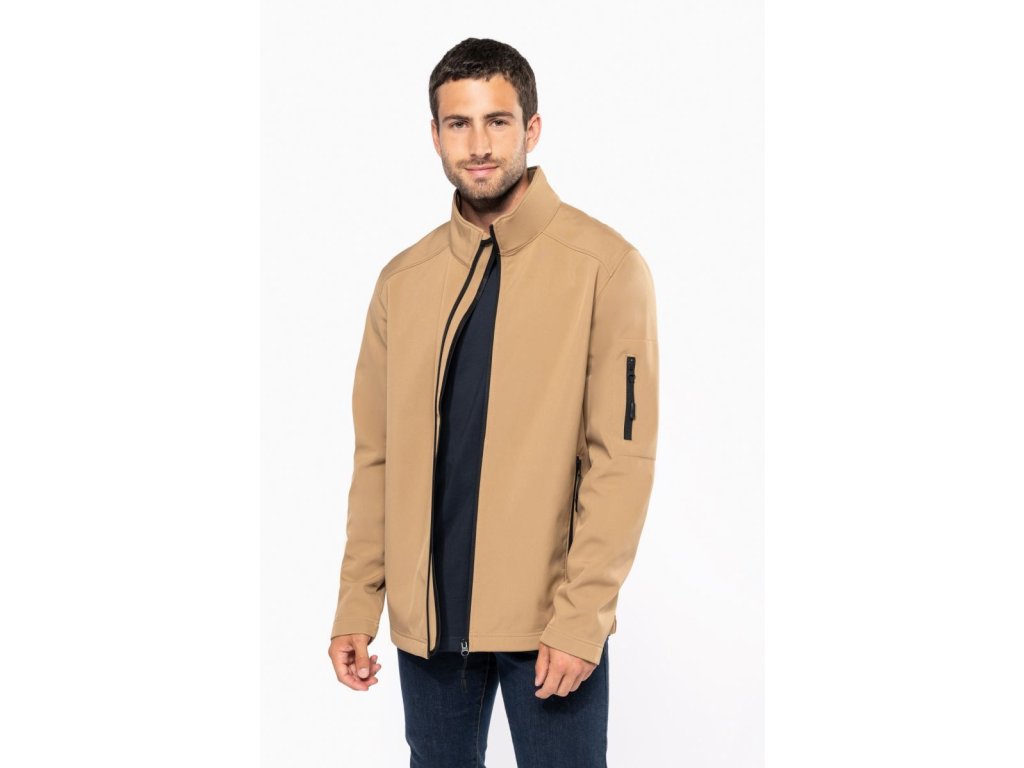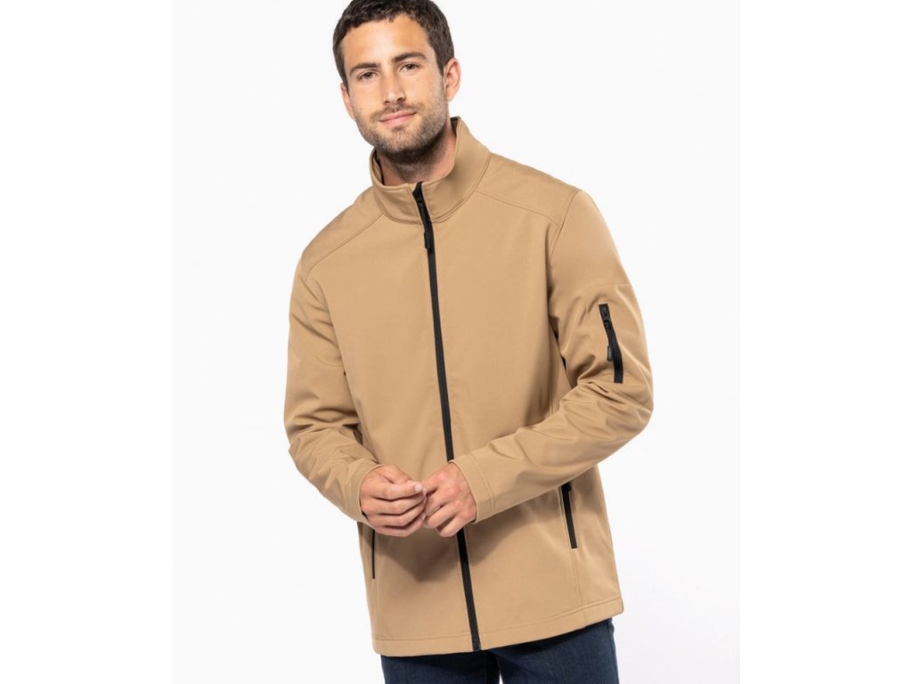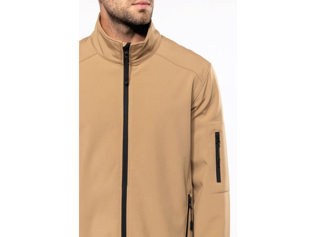 Pánská softshellová bunda rovného slim střihu. Softshellový materiál silnější 3-vrstvý softshell, materiál voděodolné (8.000mm vodní sloupec), prodyšné (3.000g/m² za 24h). Zapínání je kvalitní zip s ochranou brady. Bunda má 1 kapsu na levém rukávu se zipem. 2 přední kapsy se zipem.
