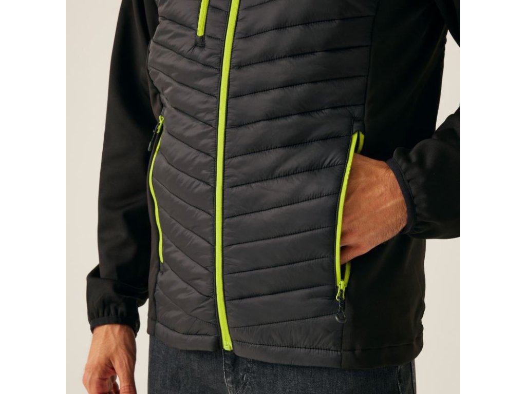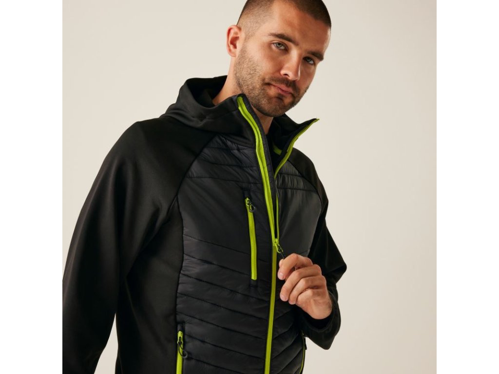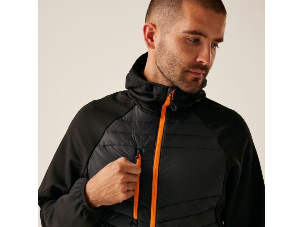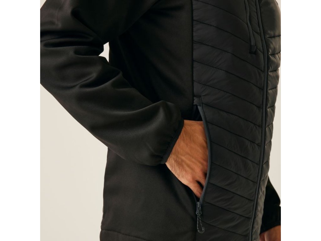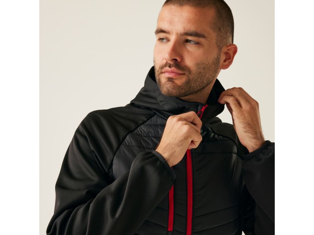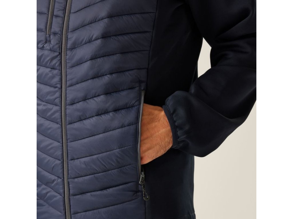 Pánská prošívaná bunda s kapucí. Bunda je pohodlná a padnoucí díky elastickým bočnicím. Tyto bočnice umožňují komfort při pohybu. Přední a zadní díl je prošívaný s voděodpudivou úpravou Bunda má elastické vsadky také na kapuci a rukávech. Bunda má zip po celé délce s ochranou brady. Boční kapsy jsou na zip a Napoleonova kapsa na zip. Bunda má lehkou výplň warmloft. Bunda je vhodná pro každodenní nošení, sport ale také pro práci. Lze sušit v sušičce při nízké teplotě.