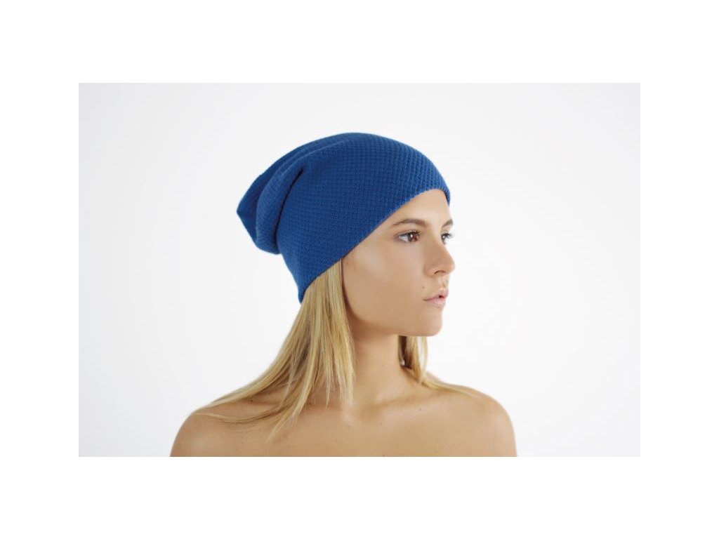Pletená čepice. Čepice delšího střihu cca 29cm. Čepice je dvouvrstvá, vnitřní strana hladké pleteniny. Vrchní pletenina je voštinového vzhledu, velmi zajímavý a netradiční vzhled.