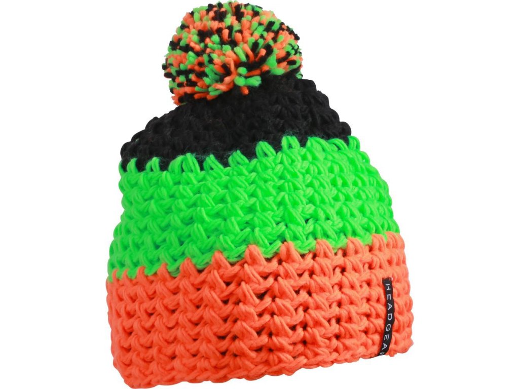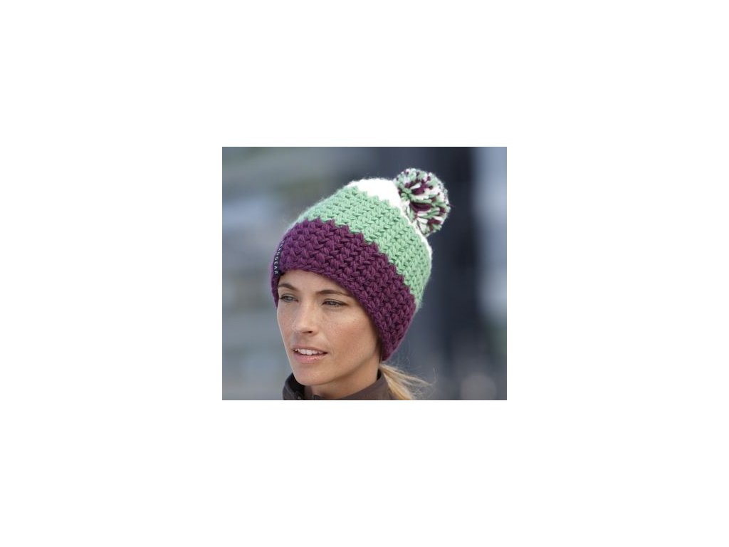 Trendy 3-barevná háčkovaná čepice s bambulí (kulich). Kulich s hrubě síťovanou strukturou. Pohodlné a příjemné nošení díky fleecovému pásu na vnitřní straně.