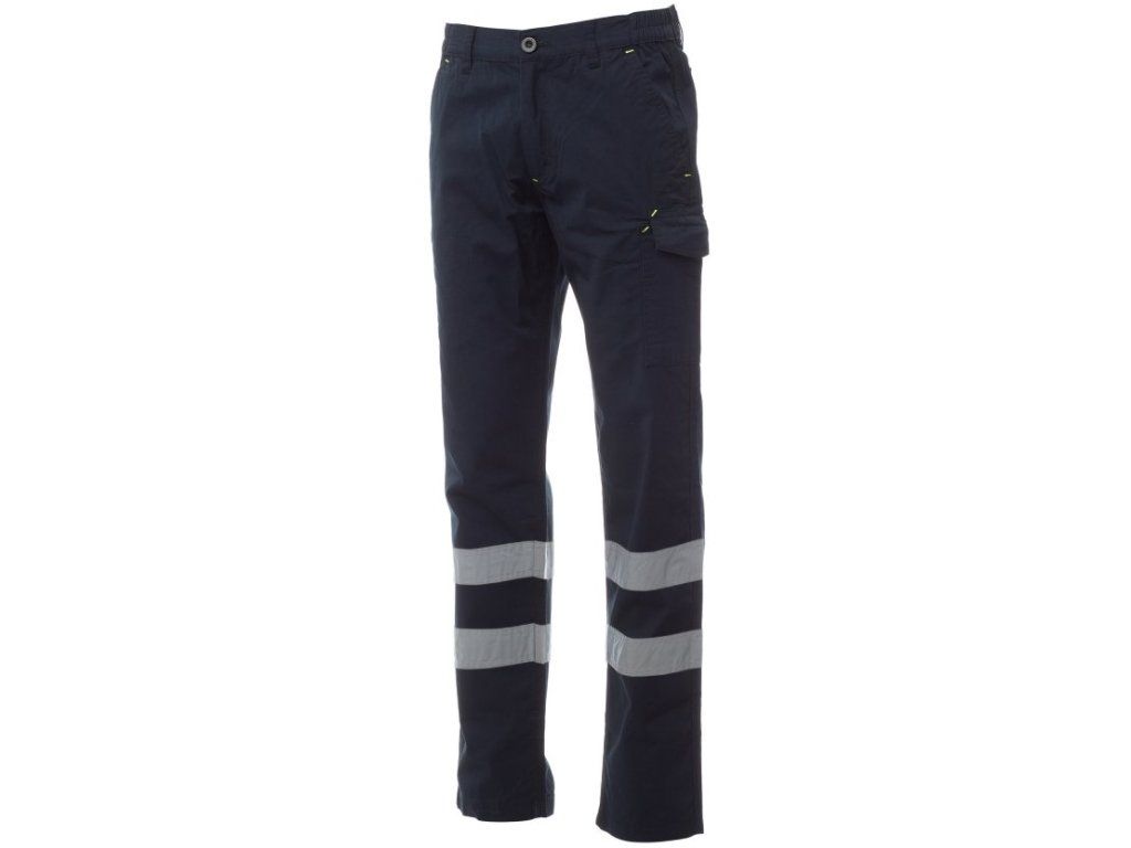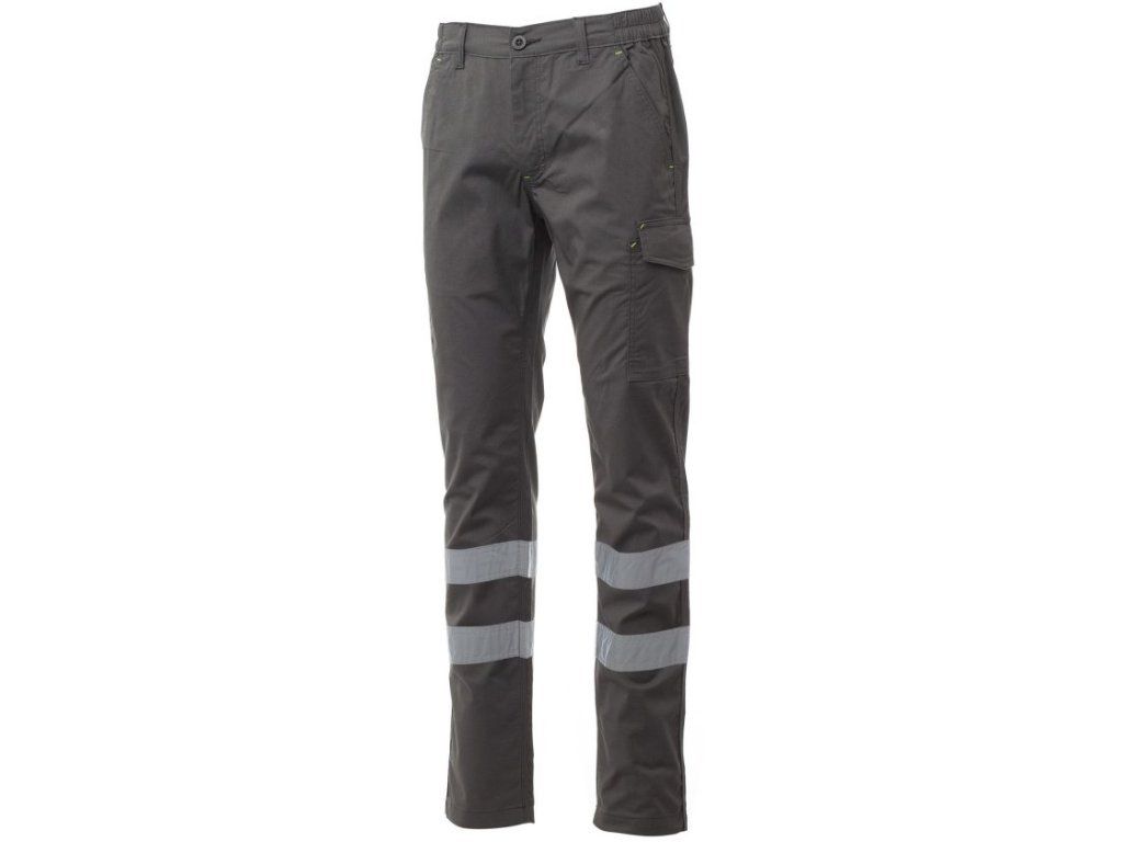 Pracovní kalhoty z lehké mini strečové ripstopové bavlny. Kalhoty mají reflexní pásky kat. 1. Pas kalhot je s poutky a elastickým páskem v pase. Zapínání kalhot na zip s klopou a knoflíkem na pásku. Přední kapsy francouzského střihu, kapsička na mince v pravé kapse při nošení a boční kapsa na svinovací metr. Levá postranní kapsa s uzavírací klopou LOCK SYSTEM. Dvě zadní kapsy, z nichž jedna s klopou na suchý zip. Prošití trojjehlou.