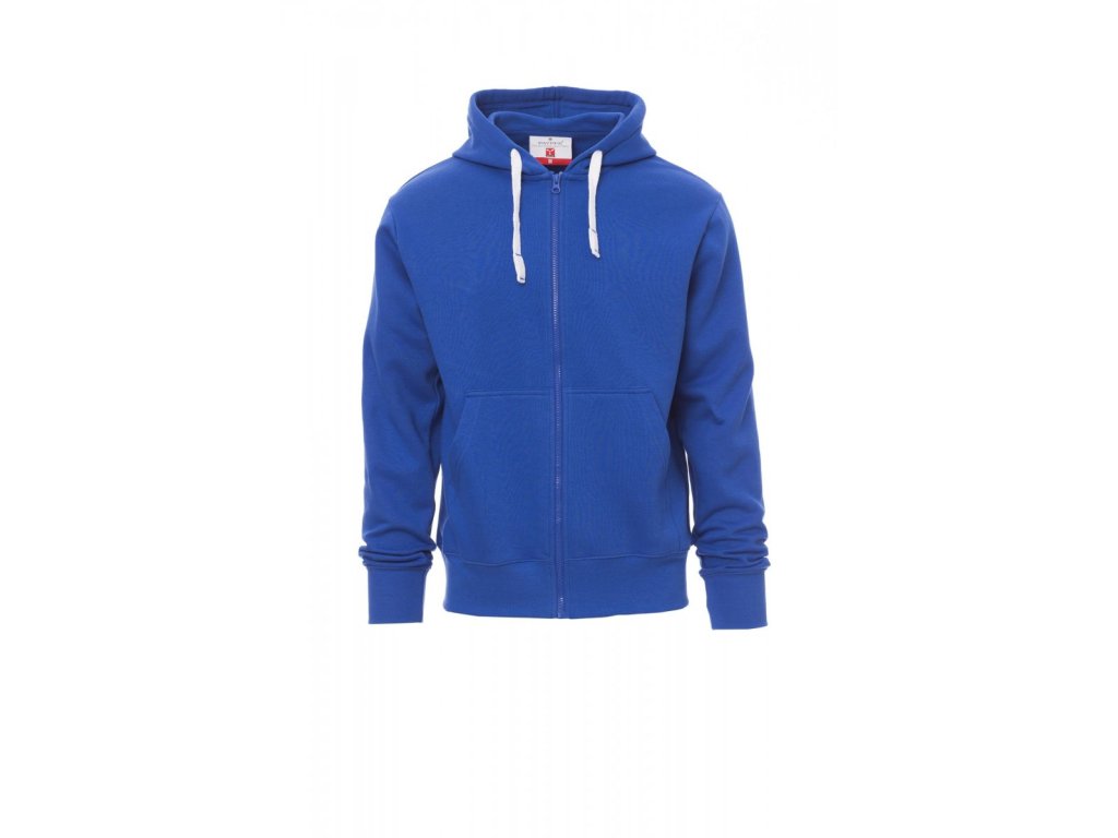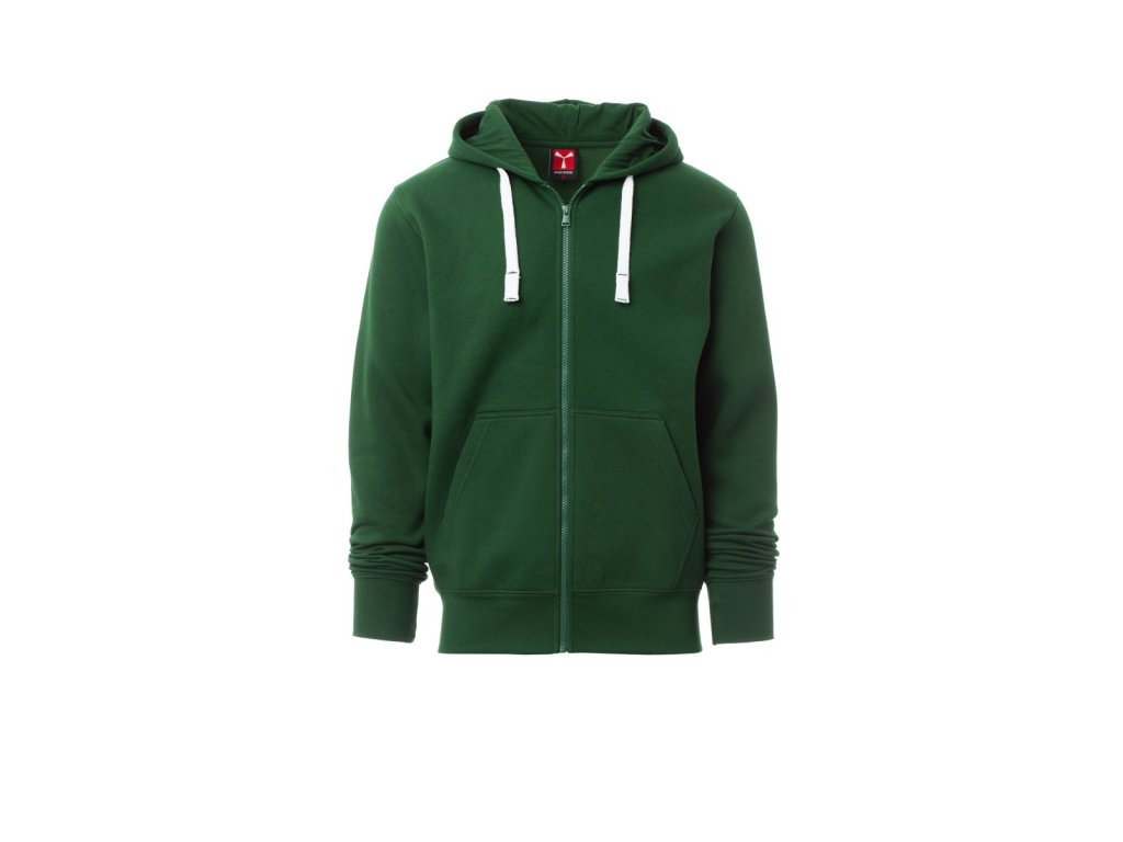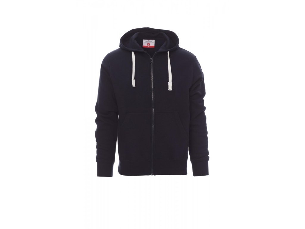 Pánská klasická mikina na zip (celopropínací) s kapucí. Mikina má kapuci se stahovací šňůrka s barevně sladěným prošitím. Mikina má skrytý plastový celozip s jedním kovovým jezdcem. Mikina má dvě klokaní kapsy. Manžety a pas jsou s elastickým žebrováním. Mikina má zesílené švy pro delší životnost. Vyztužná páska na vnitřní straně krku ve sladěné barvě.