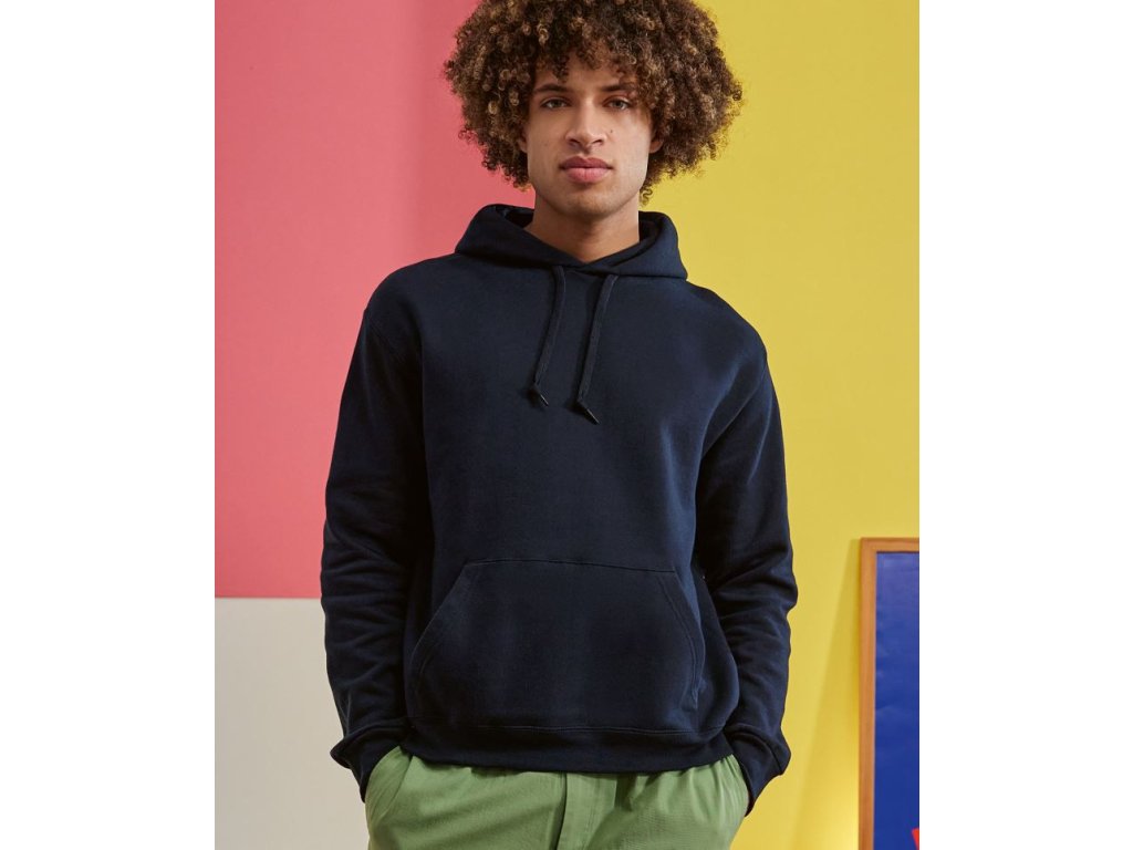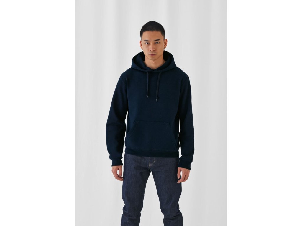 Pánská mikina s kapucí s podšívkou a stahovací šnůrkou tón v tónu. Mikina je rovného střihu (kulatá pletenina). Kapuce je podšitá se šňůrkou. Klokaní kapsa vpředu. Na rukávech a lemu jsou manžety v 1x1 žebrovaném úpletu s elastanem. Ramenní švy a průramky s plochým horním stehem. Mikina je uvnitř počesaná. Mikinu lze sušit v sušičce při nízkých teplotách.