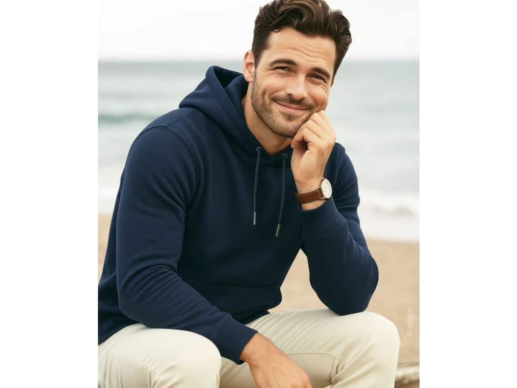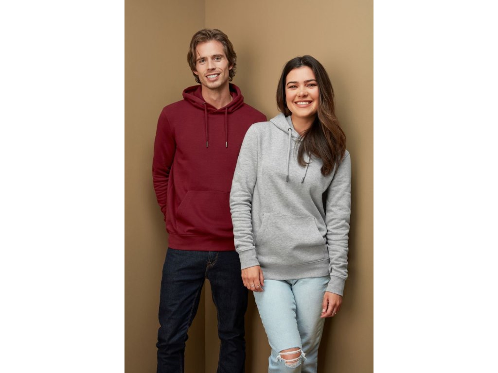 Pánská, unisex mikina s kapucí. Mikina má krční lemovku se vzorem rybí kosti a půlměsíčkovou posádku na krku. Kapuce mikiny je 2-vrstvá s kovovými očky a šňůrkou. Úplet na rukávech, krku a v pase je 1x1 žebrovaný. V pase také s elastanem. Materiál je 3-vrstvá kvalitní teplákovina. Povrch je ze 100% bavlny. Vnitřní strana mikiny je počesaná.
