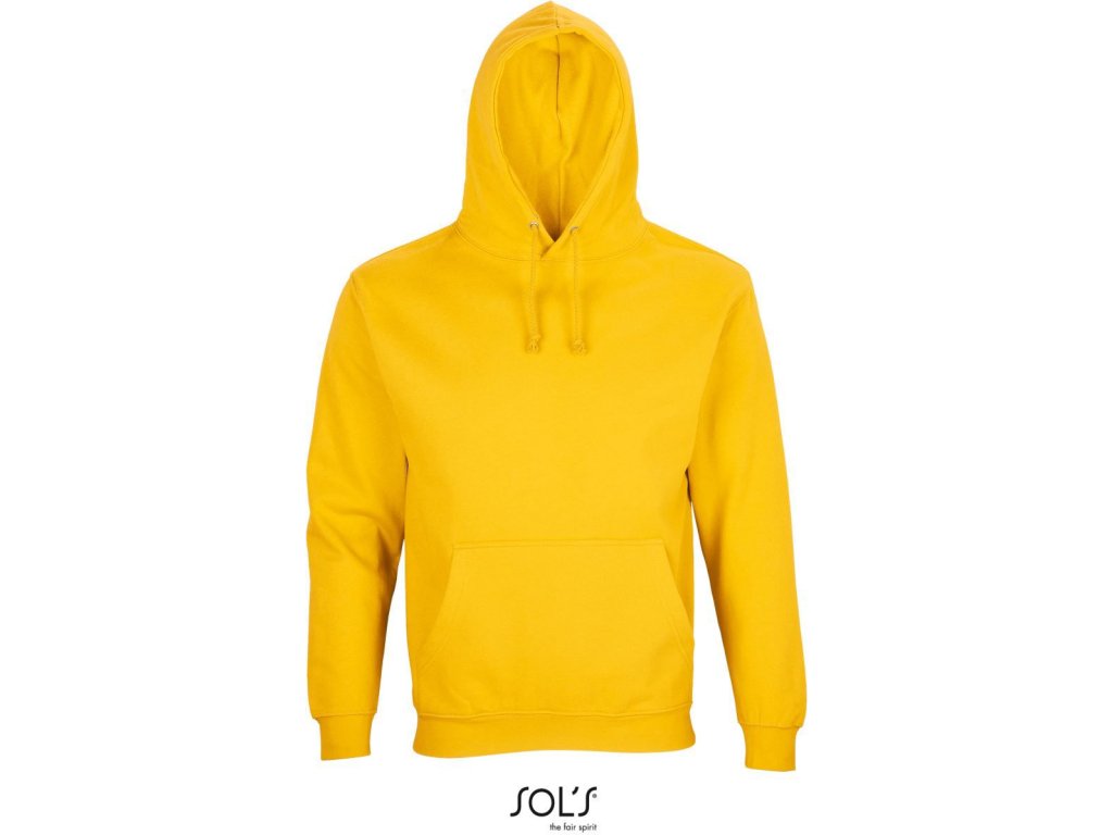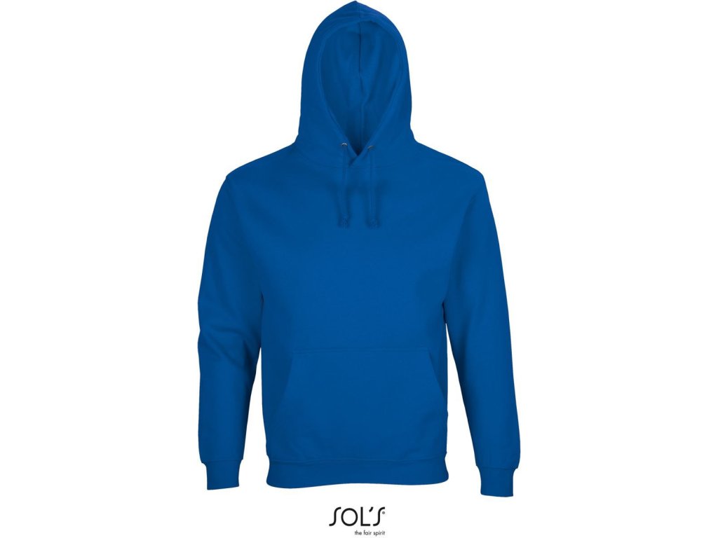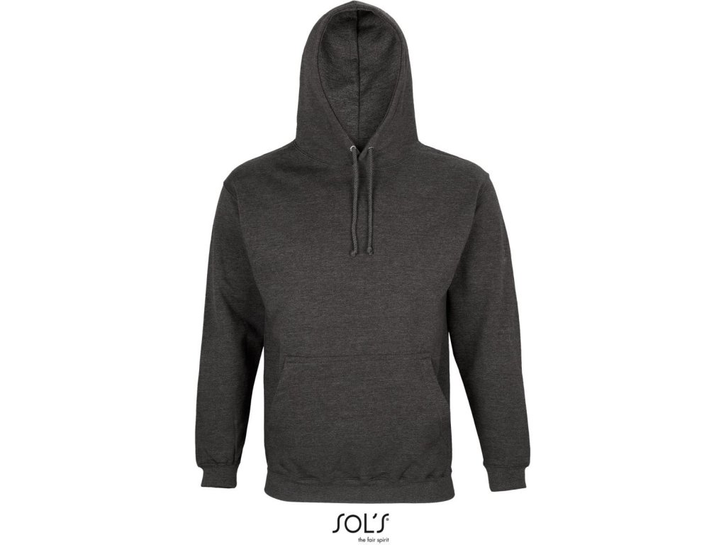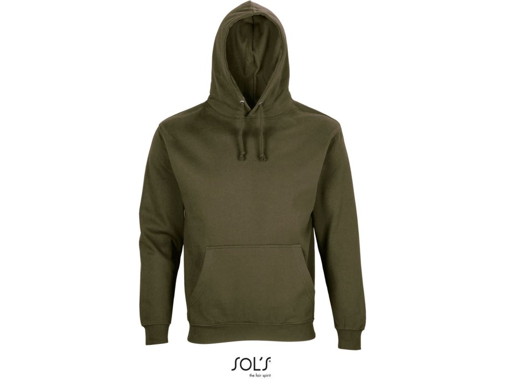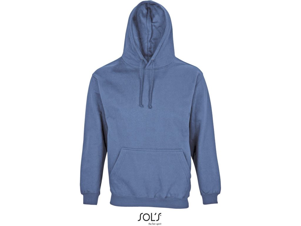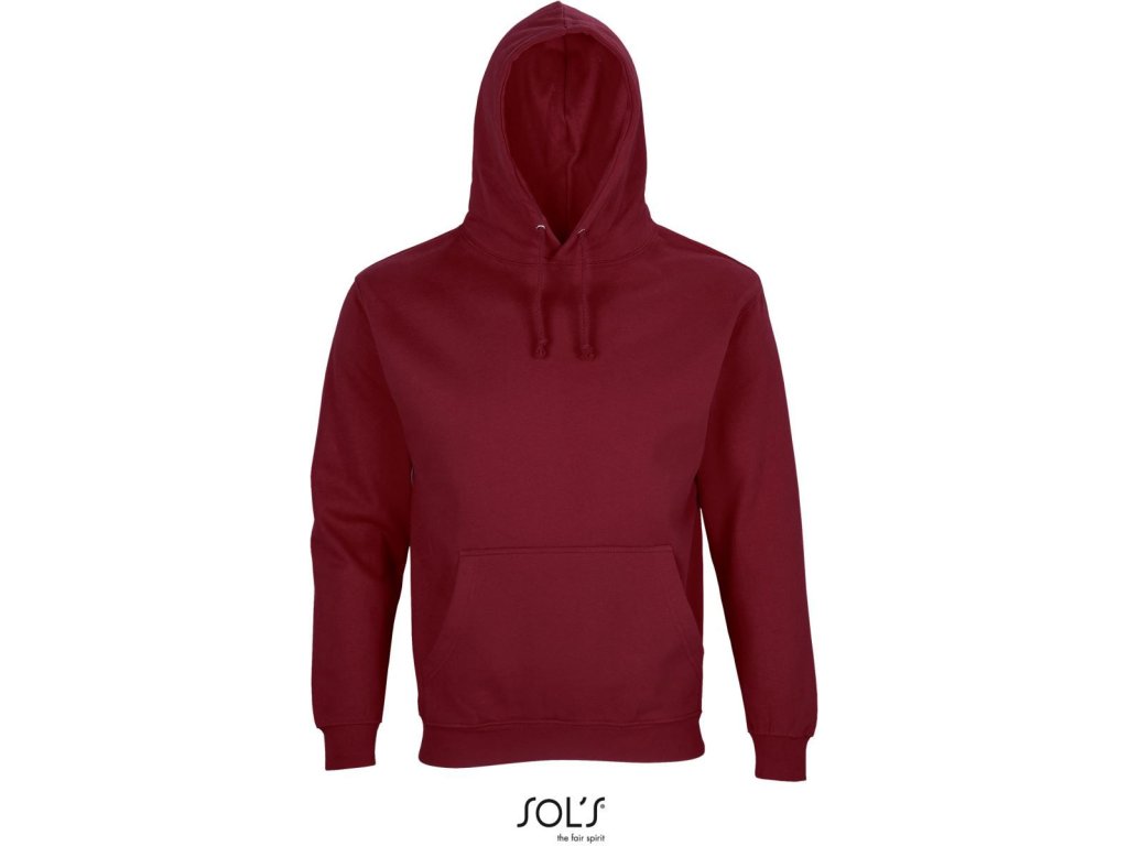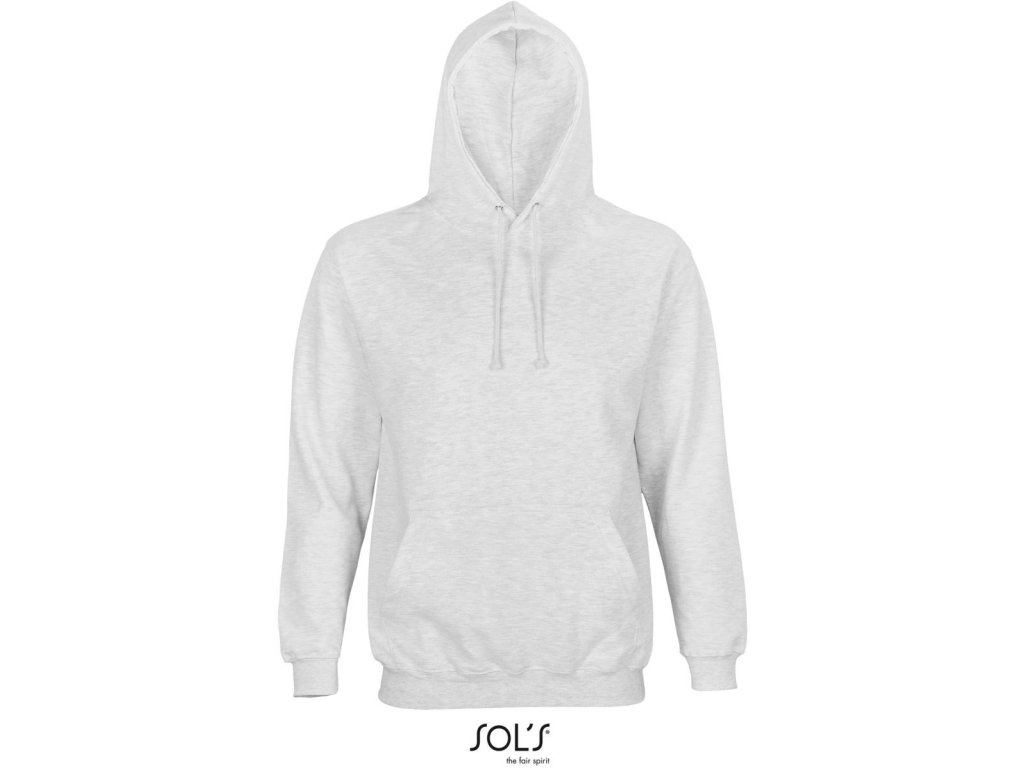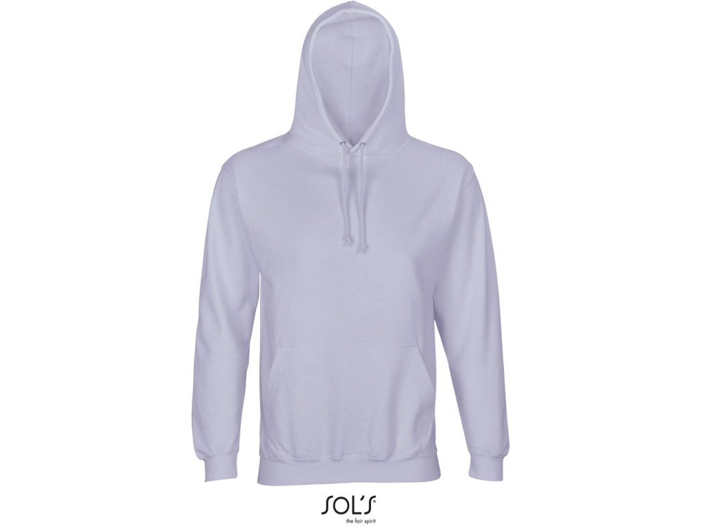 Unisex mikina s kapucí v klasickém rovném střihu. Mikina má půlměsícovou posádku na krku a krční lemovku. Rukávy jsou vsazené. Manžety na rukávech a lemu jsou žebrované. Klokaní kapsa. Kapuce je podšitá se šňůrkou a kovovými očky. Mikina je uvnitř počesaná.