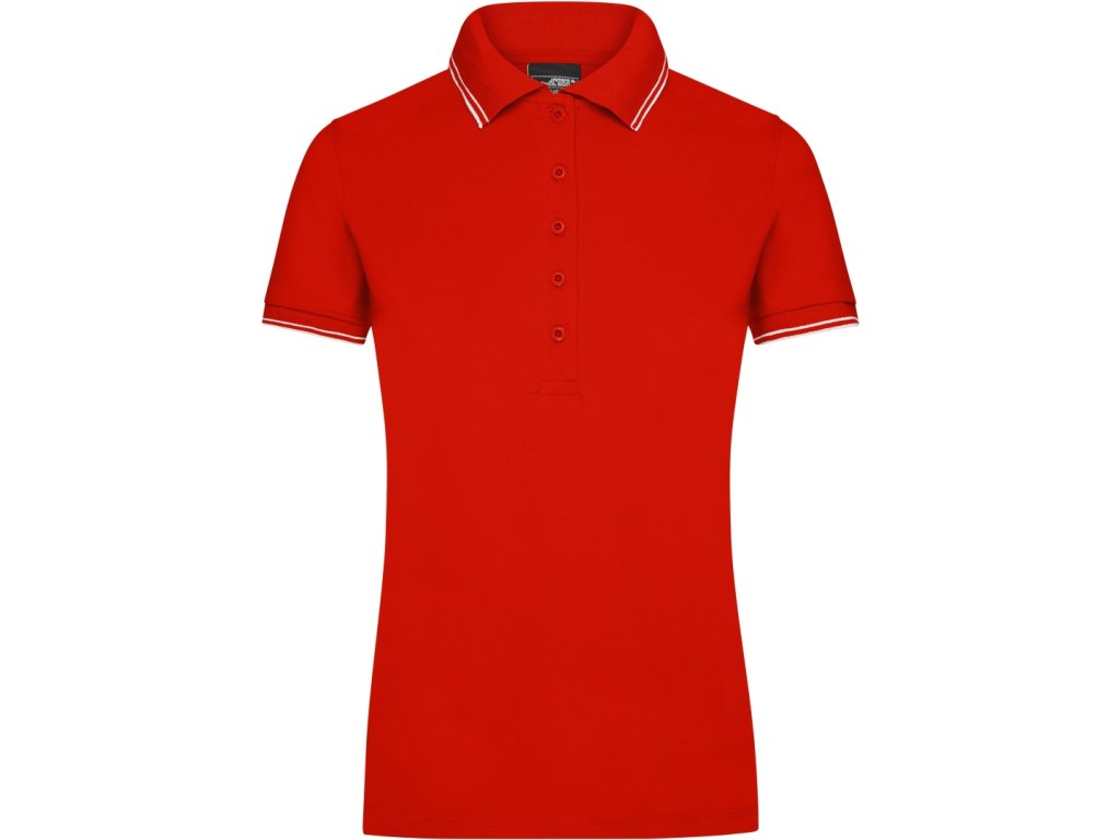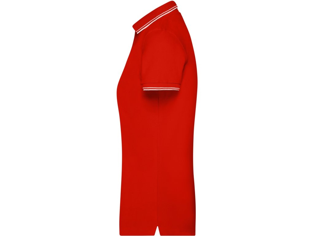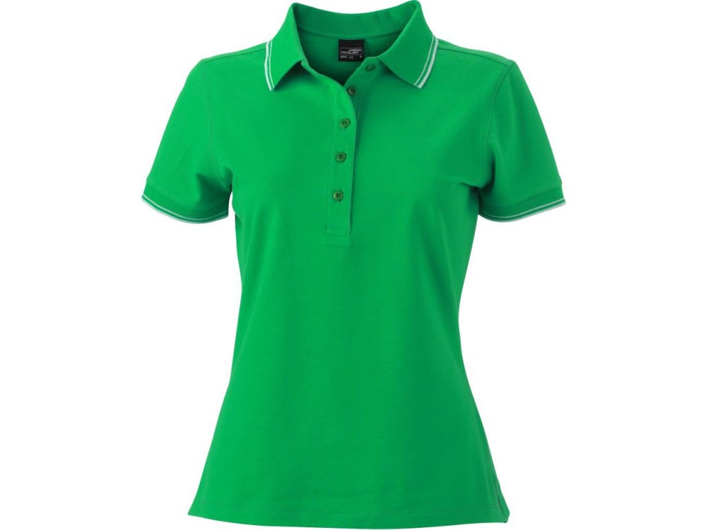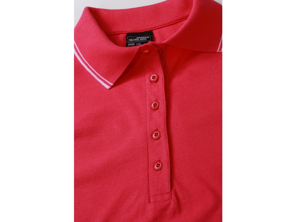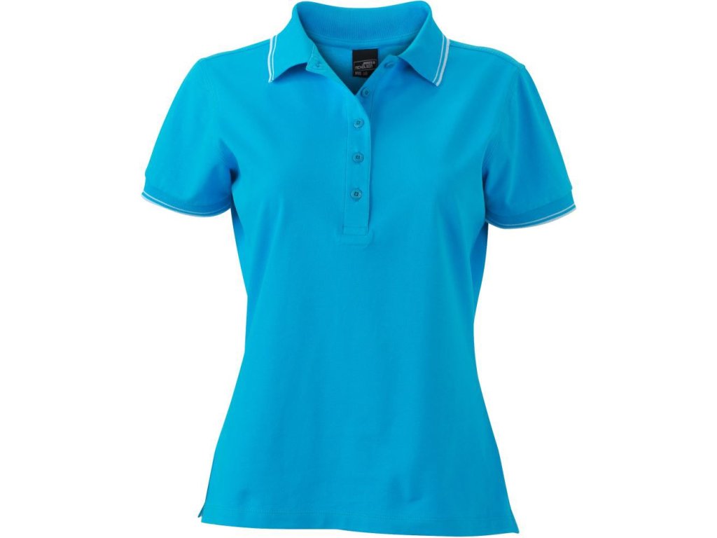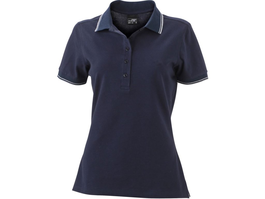 Velmi příjemná dámská polokošile s elastanem. Dámské polo je z pique tkaniny. Pletený úplet na límci a rukávech. Na rukávech a rozparcích kontrastní proužky. Dámských 5 knoflíčků ve výstřihu. Mírně vypasovaný dámský střih. Materiál je bavlna s příměsí elastanu, takže tvarově stálý, příjemný materiál.