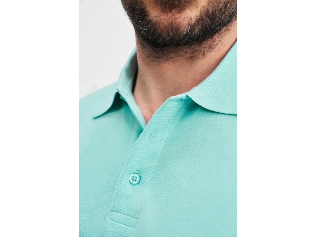 Pánská klasická kvalitní polokošile s krátkým rukávem. Velmi jemná kvalitní tkanina pique - 100% bavlna. Polokošile má sportovní střih s postranními rozparky. Pletený límec a manžety, knoflíky v odpovídající barvě. Dvojité prošití na ramenou a v průramcích.