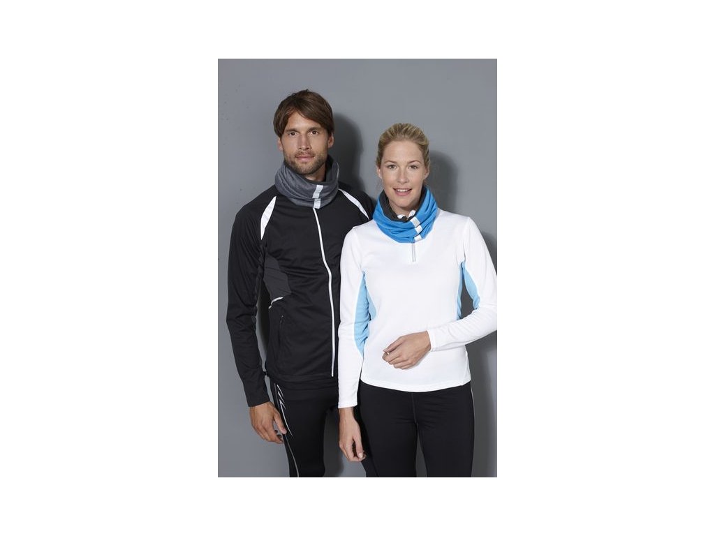 Zimní multifunkční šátek s reflexním pruhem. Nákrčník z elastického, tvar zachovávajícího jersey. Vnitřní strana teplý microfleece. Jemné a příjemné na nošení. Nákrčník má víceúčelové užití.