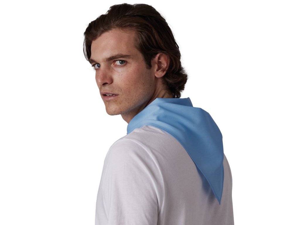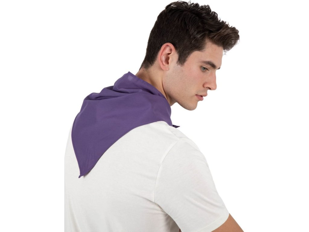 Multifunkční trojcípý šátek. Šátek má otevřené válcové lemy, jednoduchý šev. Tkanina je s příměsí bavlny pro větší odolnost. Praktický šátek na krk, hlavu... Skvělý šátek pro táborové hry, pro vlastní tvoření.
