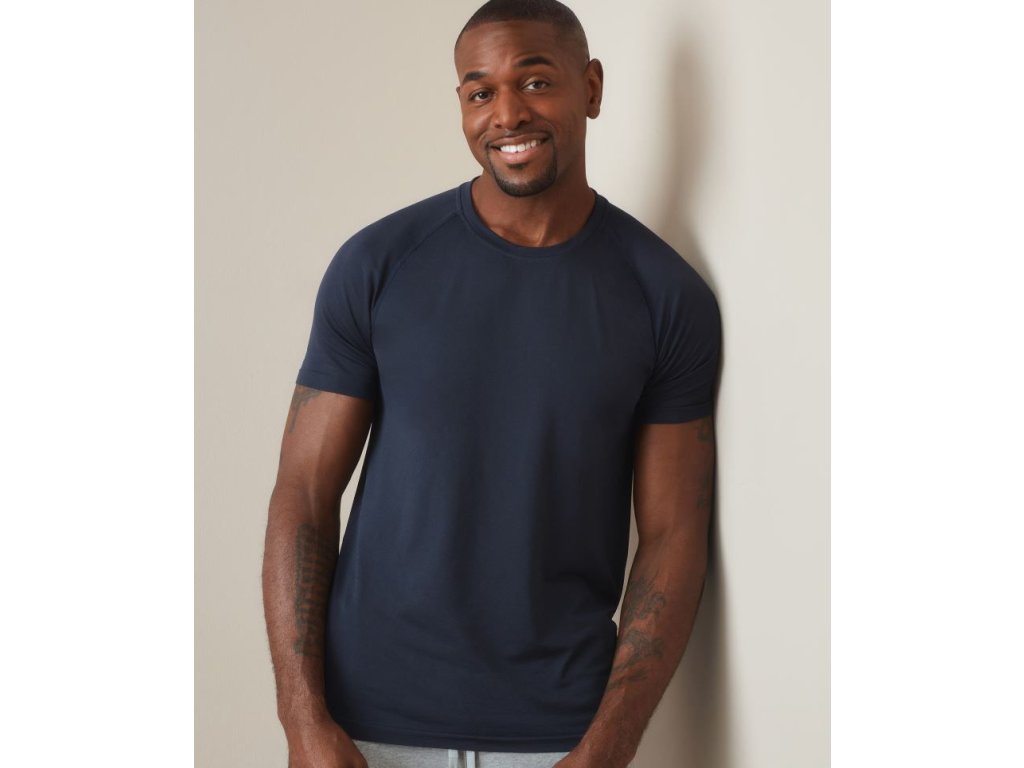 Pánské sportovní funkční tričko. Tričko má úzce lemovaný výstřih, ploché švy s nízkým třením, začišťující pásek kolem krku. Tričko má raglánový rukáv pro pohodlnější pohyb při sportu. Kvalitní materiál je prodyšný, měkký, pružný. Je bezešvé, bez bočních švů.