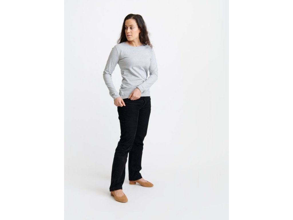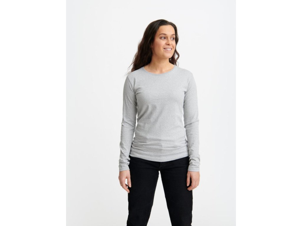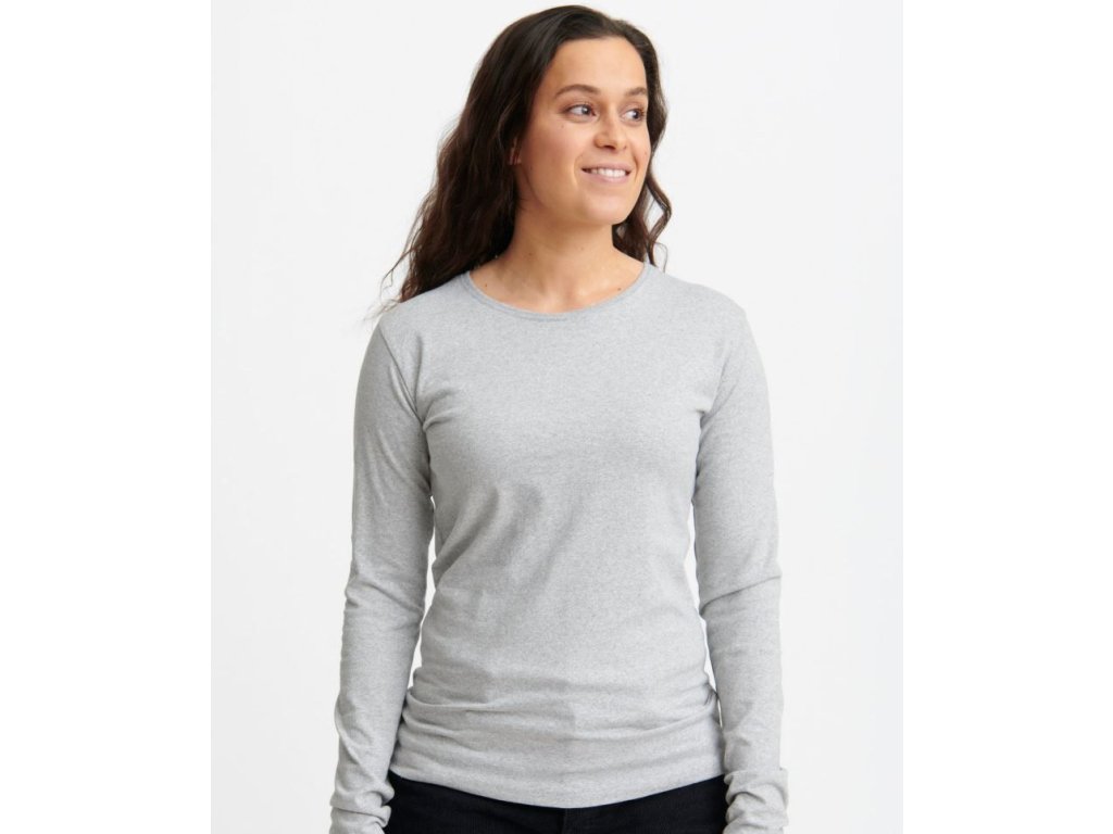 Dámské triko s dlouhým rukávem vyšší gramáže. Triko je lehce vypasovaného střihu. Výstřih je kulatý z žebrovaného úpletu. Materiál trika je odolný, příjemný a měkký na omak. Triko má zesílený výstřih a ramenní švy. Triko lze sušit v sušičce při nízkých teplotách.