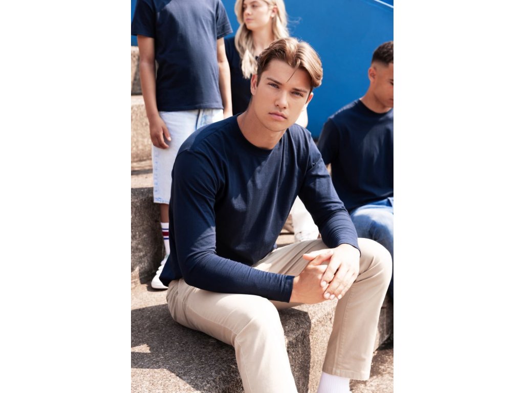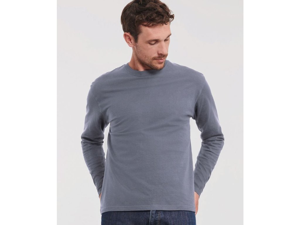 Klasické pánské triko s dlouhým rukávem vyšší gramáže. Triko je z kulaté pleteniny. Triko má kulatý průkrčník z 1x1 žebrového úpletu s prošitím a souvislou lemovku kolem krku a na ramenou. Triko lze sušit v sušičce.