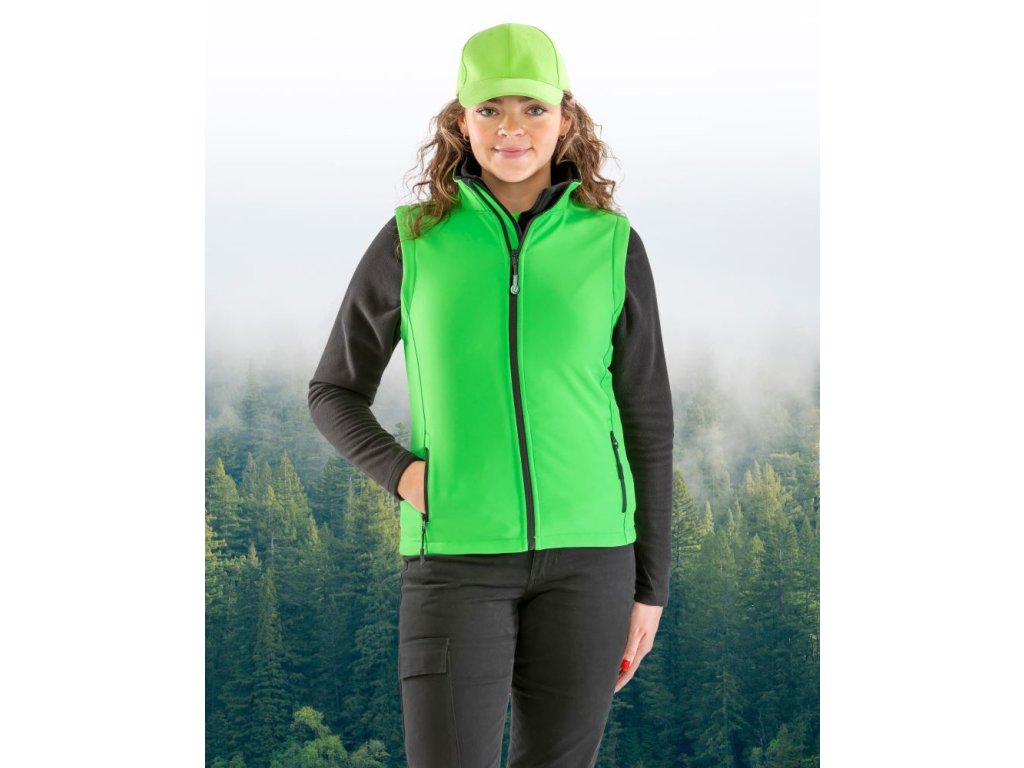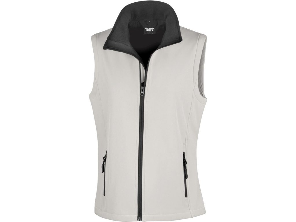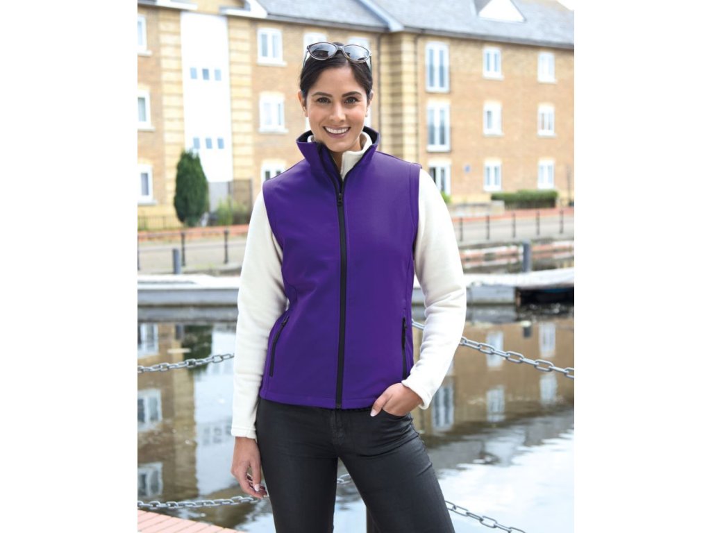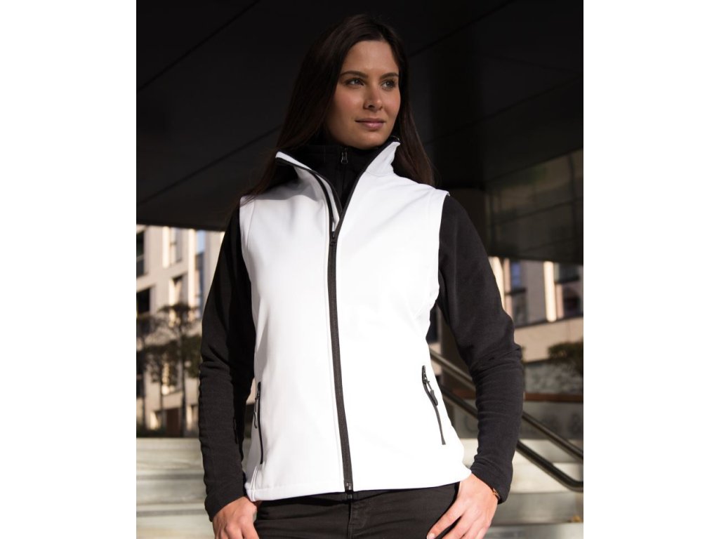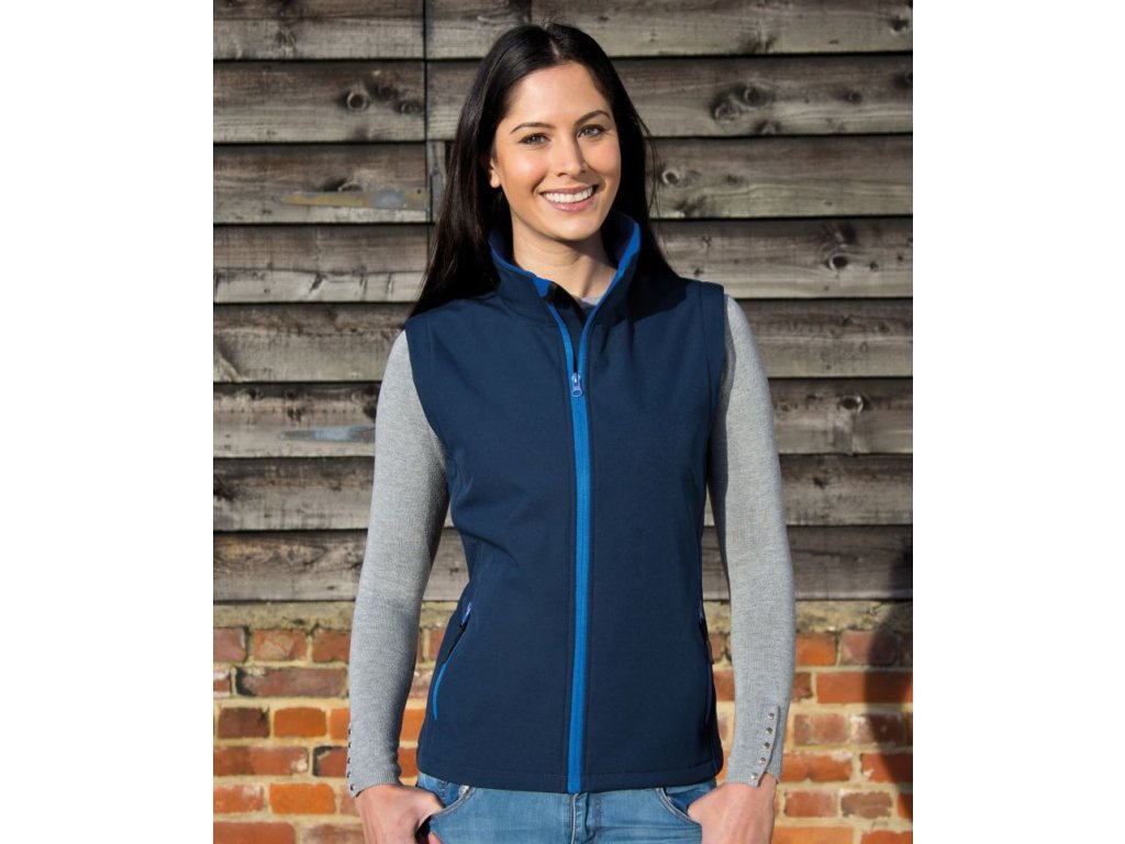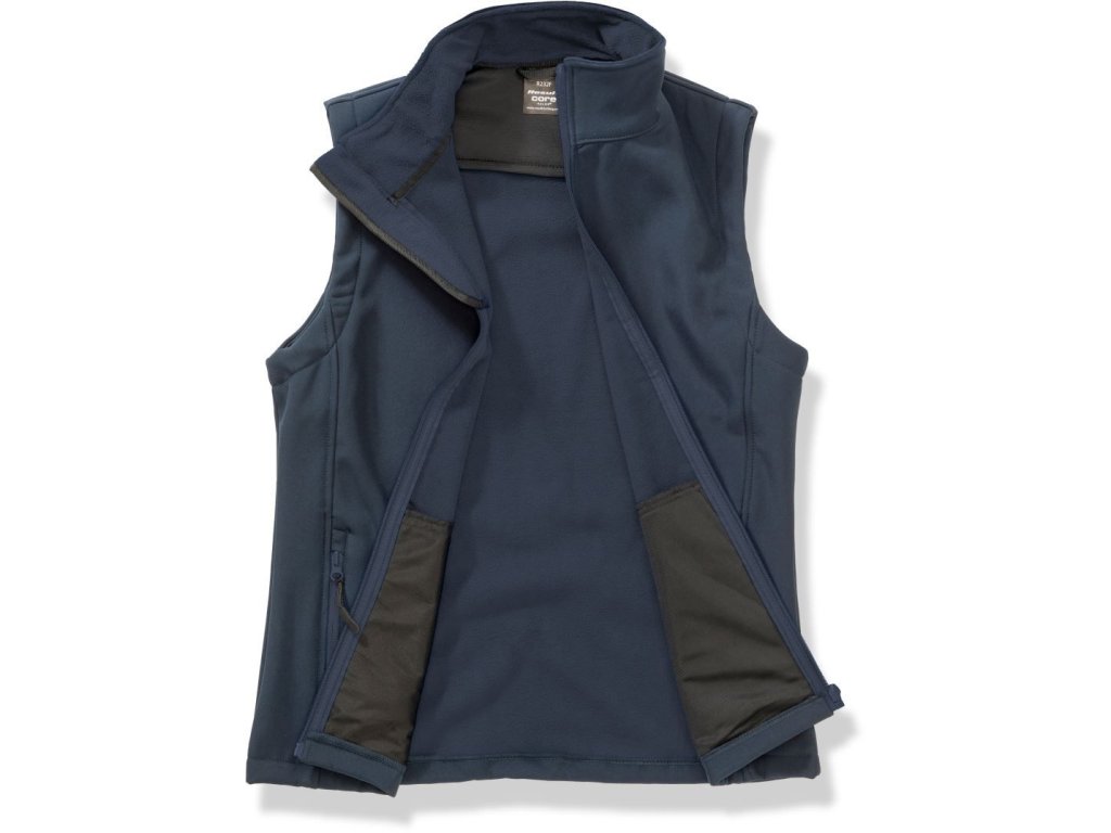 Dámská softshellová vesta vypasovaného střihu. Vesta je z voděodpudivého, prodyšného materiálu a je odolná proti větru. Dánská vesta má stojatý límec. Vesta má plný celopropínací zip YKK v kontrastní barvě s ochranou brady. Boční kapsy jsou se zipem. Vesta má dekorativní švy. Materiál speciální struktura příze bez elastanu pro dobrou potisknutelnost a pružnost. Vesta je vhodná pro výšivku či potisk.