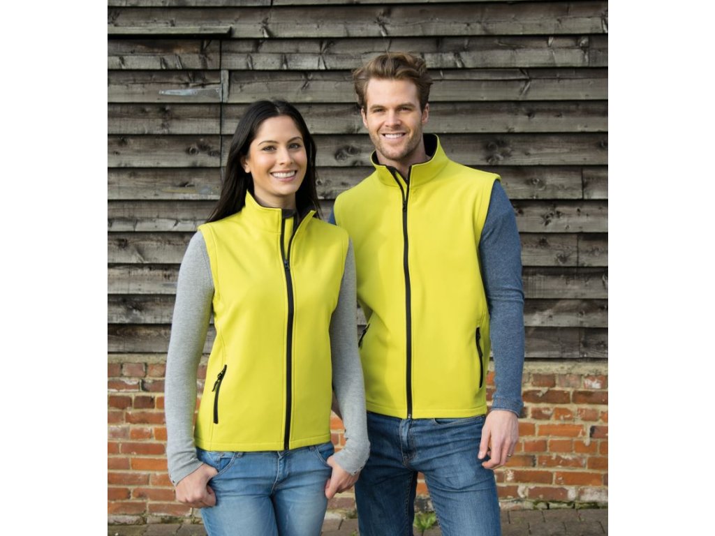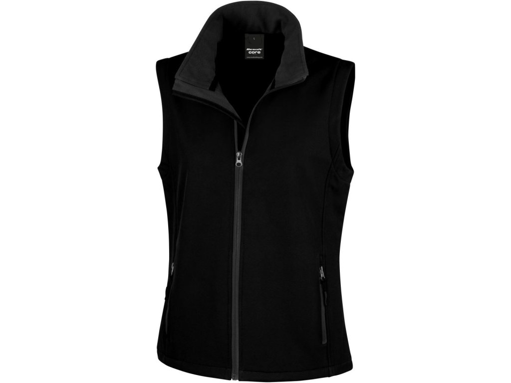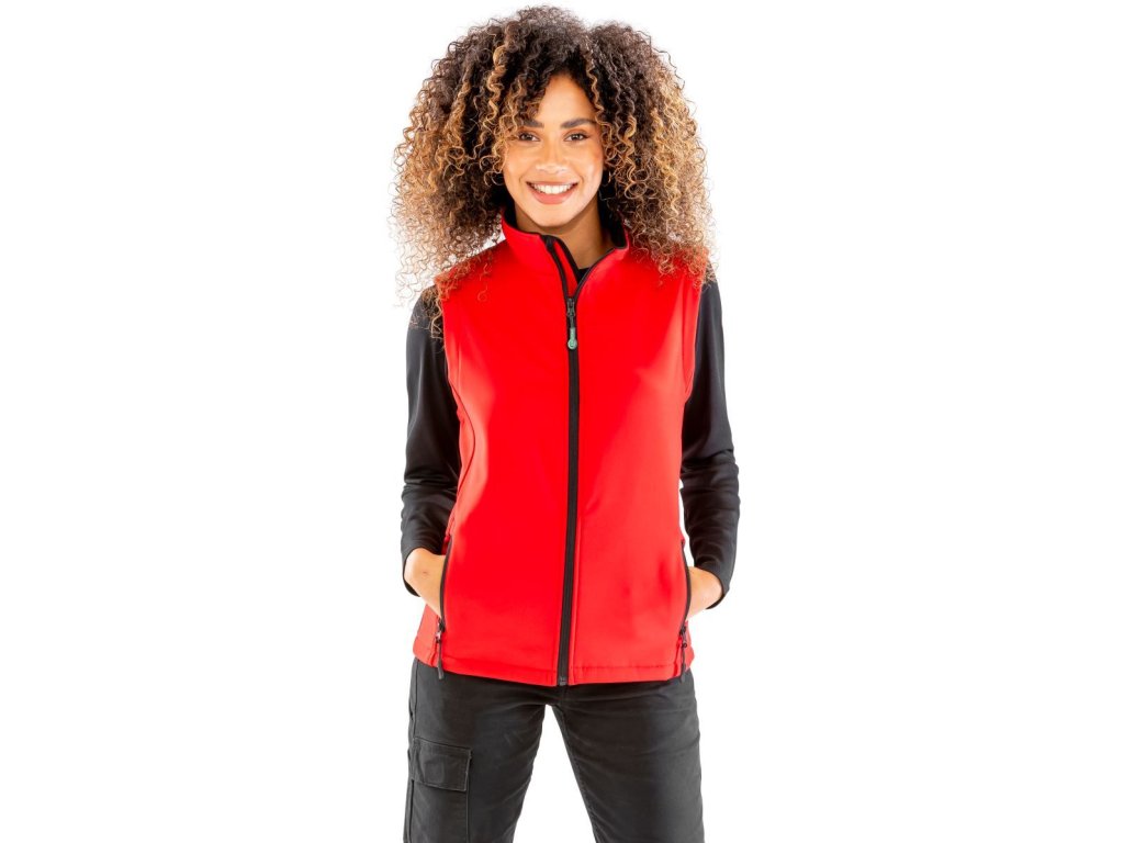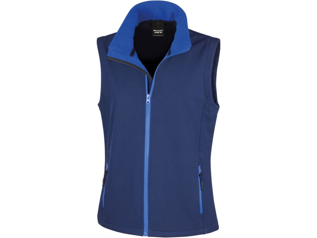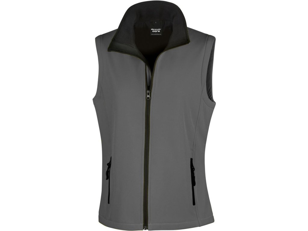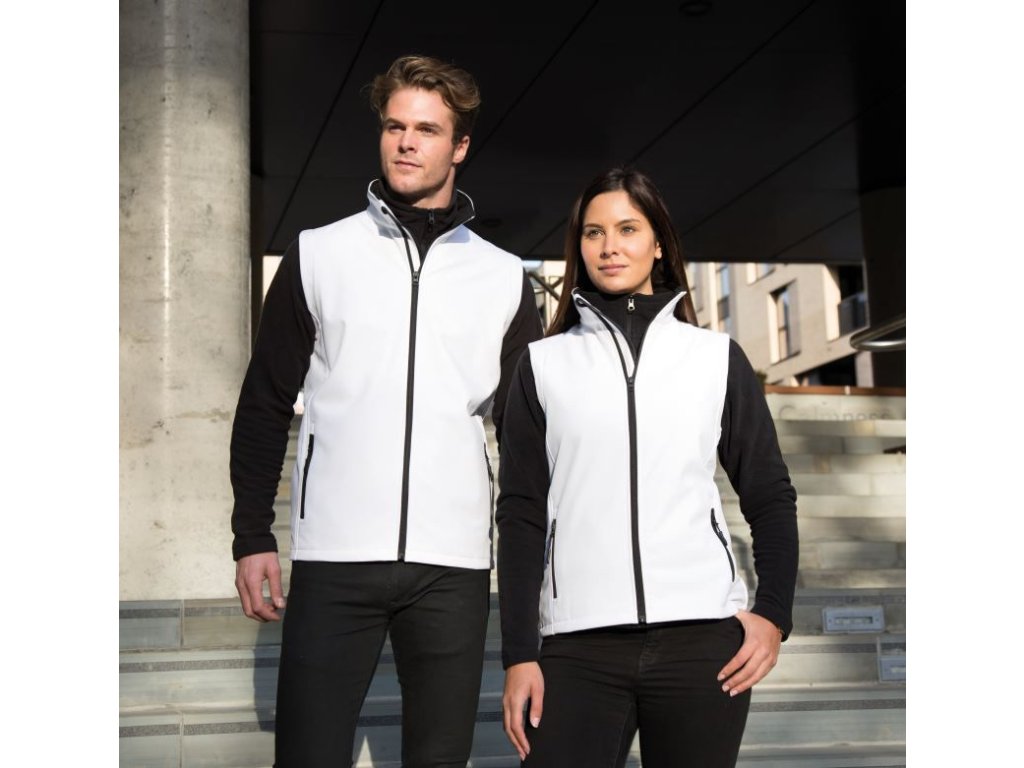 Dámská softshellová vesta vypasovaného střihu. Vesta je z voděodpudivého, prodyšného materiálu a je odolná proti větru. Dánská vesta má stojatý límec. Vesta má plný celopropínací zip YKK v kontrastní barvě s ochranou brady. Boční kapsy jsou se zipem. Vesta má dekorativní švy. Materiál speciální struktura příze bez elastanu pro dobrou potisknutelnost a pružnost. Vesta je vhodná pro výšivku či potisk.